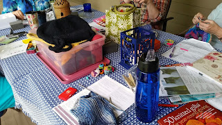 But the forecast was wrong. We had a good deal of rain for most of the day. So we gathered in the LYS and had a fun time of knitting, eating, laughing, chatting and sharing projects. What did you do for the day?